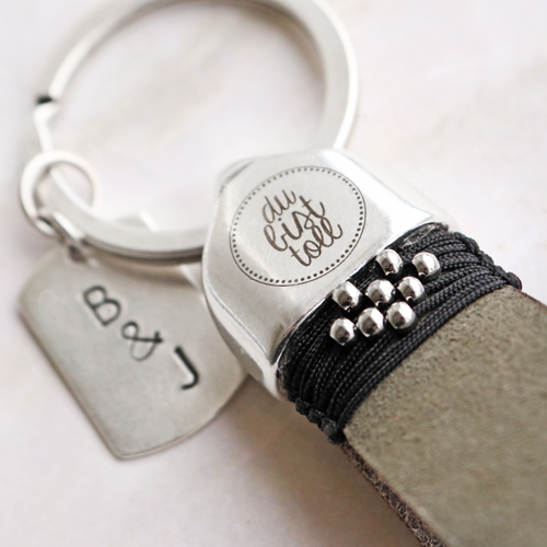 Idea con portachiavi Mix & Match con pelle DQ e cordoncino tubolare intrecciato