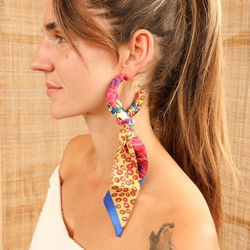 • Bandana foulard con motivo arancione-magenta-beige