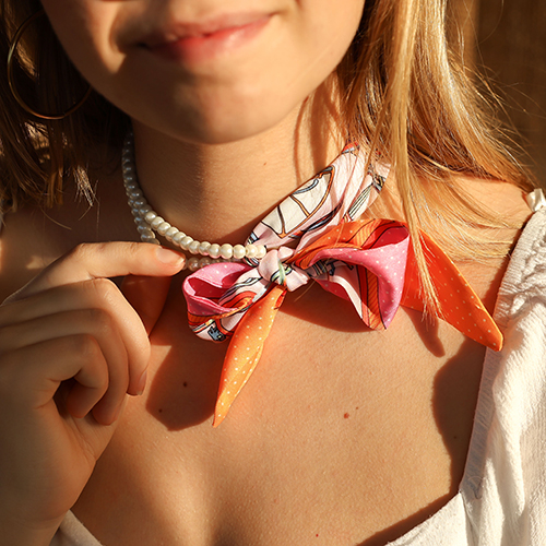 • Bandana foulard con stampa vivace rosa chiaro-arancione-rosa