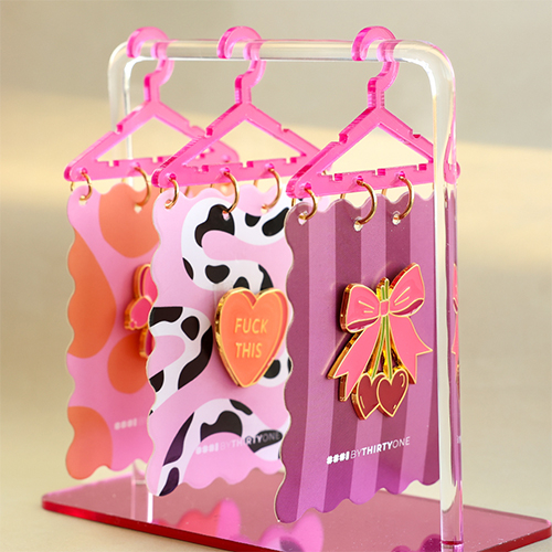 La nostra collezione di cartoncini gioielli BY31® si arricchisce di nuove varianti. Con bordi ondulati e un design esclusivo, sono disponibili in formato grande con 3 pins oppure in formato piccolo con 1 pin. Trendy e giocosi, sono perfetti da presentare come regalo nella tua collezione. Scoprili ora.