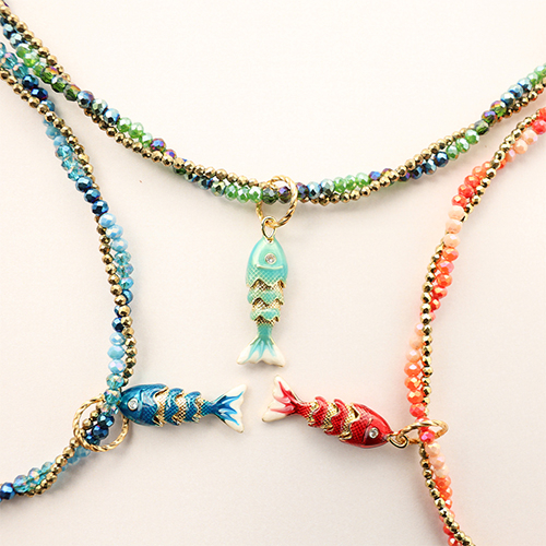 Ciondoli in ottone Eco-brass® pesce oro-verde-bianco