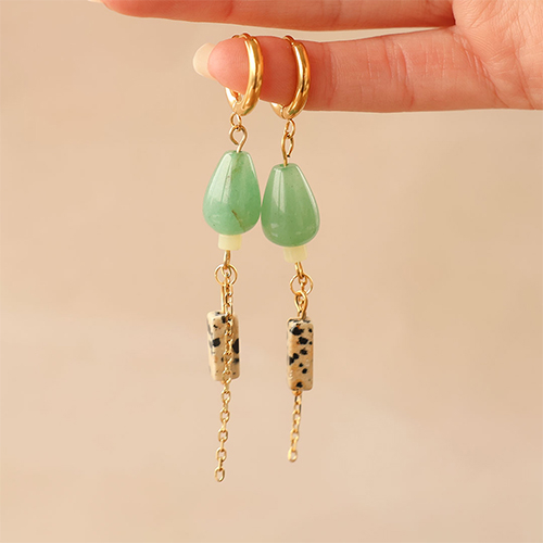 • Perline in pietra naturale Quarzo goccia verde scuro-trasparente