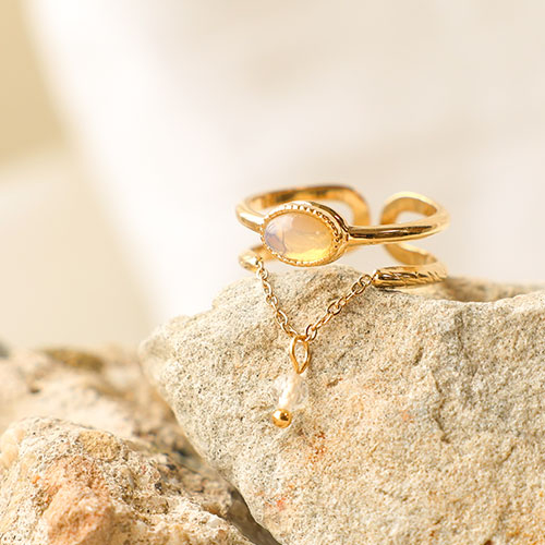 Anelli in acciaio inossidabile con pietra naturale oro-rosa chiaro