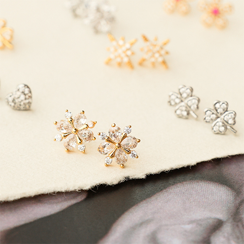 Metallo TQ in ottone orecchini zirconia fiore oro