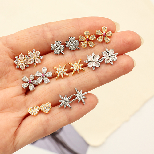 Metallo TQ in ottone orecchini zirconia fiore argento