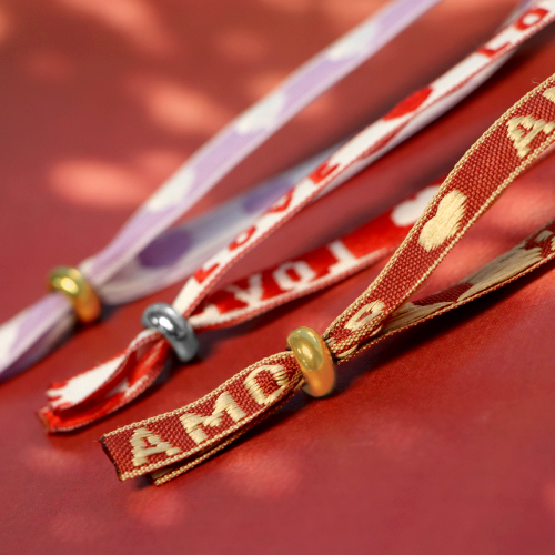 Cerchi ispirazione per creare bracciali alla moda? Allora scopri subito questa serie esclusiva di nastri con testo. Taglia il nastro della lunghezza desiderata e riscalda leggermente le estremità con un accendino per fissarle. Usale chiusure per nodo scorrevole per chiudere con facilità il bracciale. Per aggiungere un tocco personale, puoi appendere un ciondolo al bracciale con un anellino apribile.