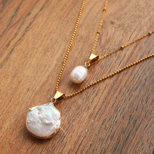 BQ Perle di acqua dolce ciondolo rotondo/goccia oro-bianco naturale