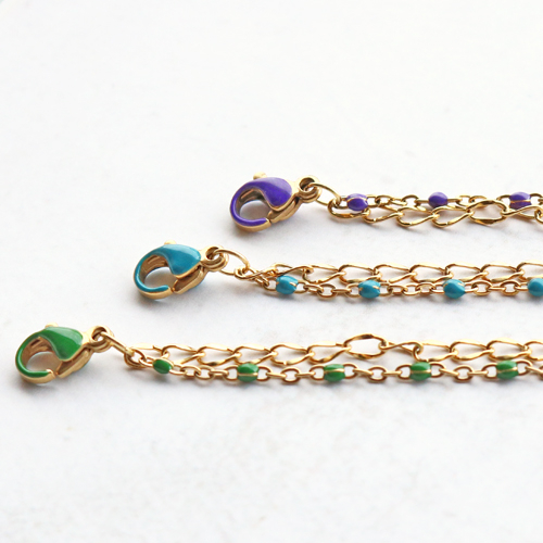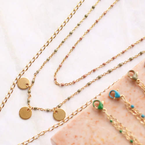 Vuoi creare gioielli di eccellente qualità, eleganti e con una nota di colore? Mettiti subito all’opera con la nuova catena rolò e moschettoni in acciaio inox con dettagli colorati a olio. Perfettamente abbinati fra loro, questi componenti sono ideali per realizzare bellissimi bracciali e collane. Per un effetto divertente, prova a combinare la catena rolò con dettagli ad olio con un altro tipo di catena rolò. Oppure combinala per creare un bracciale o collana a due fili. Fissa i due fili alla stessa chiusura per ottenere un unico gioiello. E come tocco in più, fissa alla chiusura un ciondolo in acciaio inox o appendi più ciondoli al centro della collana con un anello apribile.