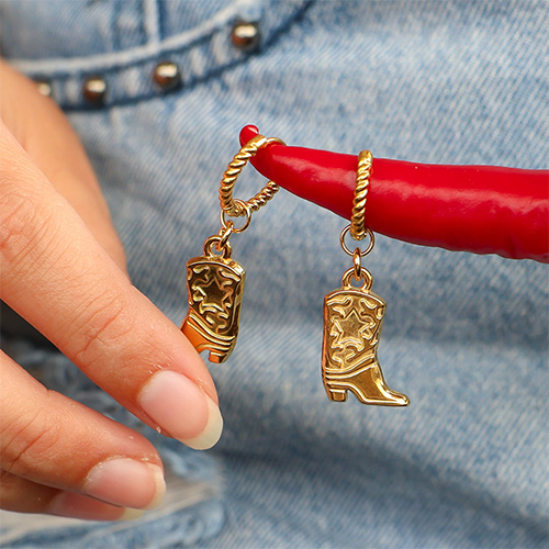 Ciondoli in acciaio inossidabile stivale da cowboy oro