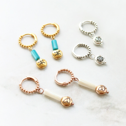Con le nuovissime perline zodiacali di metallo DQ puoi realizzare diverse creazioni originali. Puoi ad esempio decorare un bracciali Cuoio® in cuoio con un coda di topo (macramè) di diversi colori con al centro una perlina zodiacale per un tocco d’effetto. Infilando il cordoncino nei fori in diversi modi o avvolgendo il cordoncino tutto intorno al bracciale ottieni un effetto colorato e vivace. Ovviamente, sul cordoncino puoi infilare anche altre piccole rocaille o perline di metallo DQ. Alle perline di metallo DQ puoi abbinare anche i componenti per orecchini di metallo DQ e le perline di conchiglia cilindriche. Infila le perline su un gancetto e crea un divertente ciondolo. Appendilo all’occhiello del componente per orecchini ed ecco pronti i tuoi orecchini!
