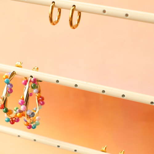 Questa nuova collezione di espositori per bigiotteria ti aiuta a presentare magnificamente i tuoi gioielli. Disponibili in diverse forme e dimensioni per orecchini, bracciali, collane e altro ancora. Lascia che i tuoi gioielli risplendano con i nostri eleganti espositori!