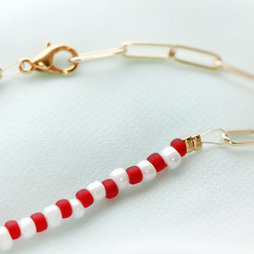 Perline alfabeto in acrilico con disegno cuoricini rosso - bianco