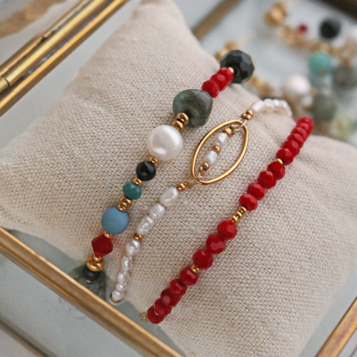 Questa volta ci siamo messi alla prova con vari tipi di perline, perché abbinandone diversi tipi e dimensioni otterrai gioielli fantastici e divertenti. Ad esempio, potresti realizzare una collana o un braccialetto con 7 fili infilaperle Beadalon da 0,38mm. Scegli tipologie diverse come le perle d’acqua dolce, le perline sfaccettate o in pietra naturale e infilale sul filo nell’ordine che preferisci. Chiudi il bracciale o la collana utilizzando una chiusura per bigiotteria e degli schiaccini. Vorresti realizzare degli orecchini abbinabili? Allora puoi creare più strati di catena a rolò per poi fissarli ai componenti per orecchini. Il risultato sarà eccezionale! Prendi le perline che vuoi utilizzare e infilale una dopo l’altra su un chiodino a pallina per realizzare un ciondolo. Fissalo alla catena a rolò ed ecco che i tuoi orecchini unici e speciali sono pronti!