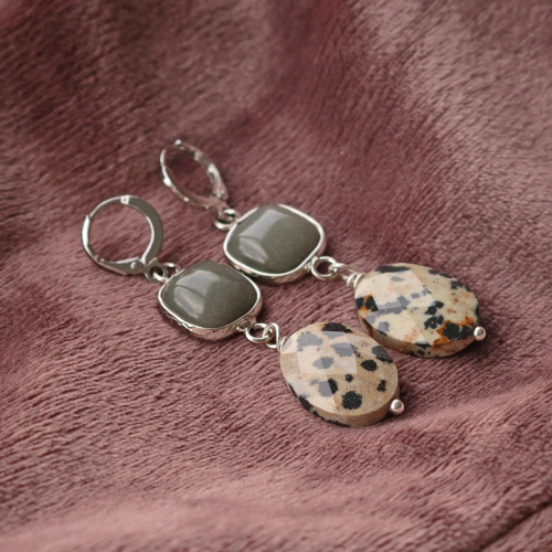• Perline in pietra naturale Diaspro Dalmata sfaccettata ovale grigio beige
