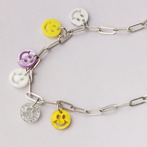 Realizza bellissime creazioni con questi ciondoli smiley di tendenza in plexx e metallo DQ.