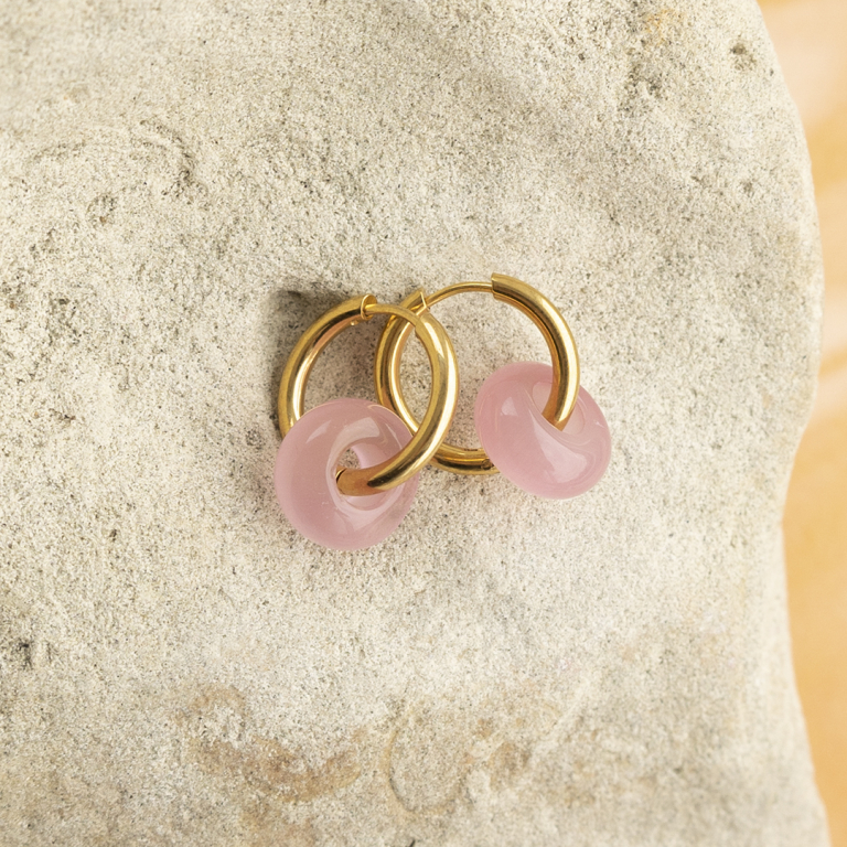 Perline di pietra naturale glas a rondella 14mm rosa