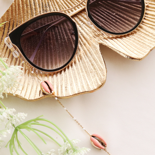 Sapevi che la catenina per occhiali da sole è un ottimo accessorio per completare il tuo look estivo? Le catenine per occhiali da sole sono disponibili nei vari colori e con maglie diverse. Sulla catenina con una maglia più grossa puoi appendere facilmente piccole nappine colorate con un anello apribile. Alle maglie più piccole puoi collegare perline o le conchiglie di ciprea con filo di metallo. Se preferisci lasciare la maglia così com'è, puoi scegliere di creare un extra alla chiusura con una catena a rolò e i ciondoli.