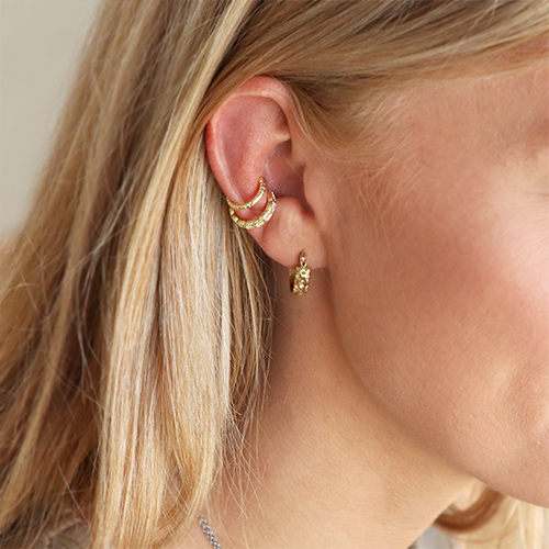Questi orecchini ear cuff sono davvero alla moda! Sono disponibili in oro e argento, con perle o pietre in zirconia. Segui la tendenza e indossa contemporaneamente più orecchini ear cuff. Puoi anche combinare gli orecchini ear cuff con altri orecchini, come quelli a cerchio, per un look alla moda!