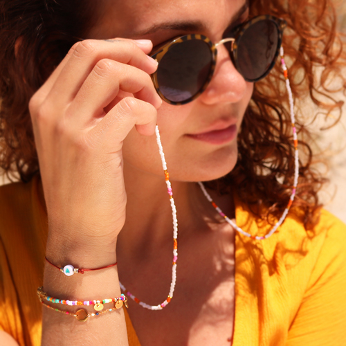 Catenina per occhiali da sole di rocailles oro-nero-bianco