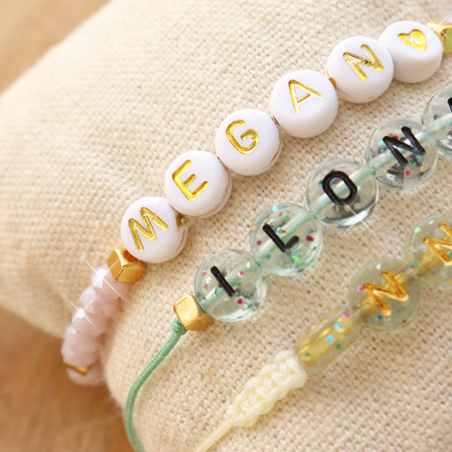 Cerchi l’ispirazione? Questi bracciali li puoi creare facilmente con le perline alfabeto in acrilico: