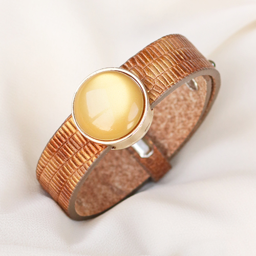 La nuova collezione di bracciali Cuoio® si adatta perfettamente alla tendenza attuale: stampa animalier e colori naturali! La collezione ha una bellissima stampa coccodrillo con sottili dettagli metallici per un look esclusivo e accattivante. Abbina i braccialetti Cuoio® con i nostri cabochon Polaris Elements. Attacca il cabochon nel castone di un passante, lascialo asciugare e fai scorrere il passante sul bracciale Cuoio®. Mix&match i tuoi preferiti e crea infinite combinazioni adatti per ogni stile.