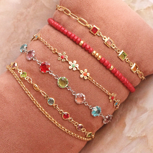Metallo TQ in ottone catena a rolò fiori oro-multicolore