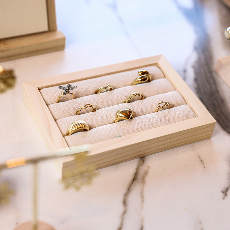 Espositore per bigiotteria per anelli 3 livelli natural-oro