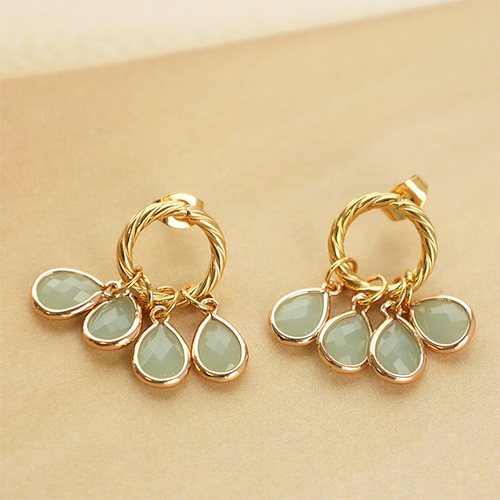 • Pendenti di vetro Crystal Glass 11x7mm a forma di goccia verde opale - oro