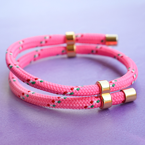 Cerchi materiali con cui creare i cordini per telefono? Questa collezione di cordoncini tubolare intrecciati in colori fluo è perfetta per creare bracciali e cordini per telefono. Completa i bracciali o i cordini per telefono con un terminale in argentato o dorato e utilizza i passanti per un tocco divertente. Se utilizzi questo cordoncino, è opportuno bruciare le estremità con il bruciafili Beadsmith Ultra Thread Zap. Attenzione! Il filo interno del cordoncino è di cotone, quindi può bruciare rapidamente.