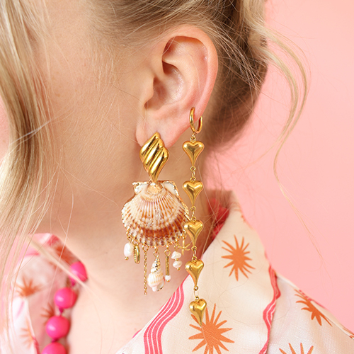 Componenti in acciaio inossidabile orecchini cozza con anellino oro