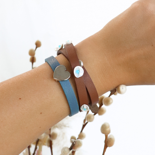 Puoi facilmente creare tu stesso le più belle combinazioni con i bracciali Cuoio. Per prima cosa, scegli il tuo bracciale Cuoio preferito, in larghezza e colore. Poi personalizzalo. Applica un cabochon di tua scelta in un castone. Lo potrai agganciare facilmente sui passanti del bracciale. Aggiungi un tocco extra al tuo bracciale, appendendo dei ciondoli all’anellino di chiusura. Che ne dici di un ciondolo in metallo DQ o di una perla d'acqua dolce? Un vero creativo può decorare il bracciale con perle d'acqua dolce piatte e perline in pietra naturale che puoi cucire a mano sul bracciale. Così facendo, potrai personalizzarlo al massimo. Crea la tua collezione secondo il tuo stile!