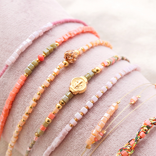 Puoi indossare queste creazioni raffinate, minimaliste e colorate con qualsiasi vestito! Abbiamo abbinato nostre nuove perline sfaccettate a cubo con vari componenti come perline di metallo DQ, piccole perline sfaccettate e le perline Miyuki! Per infilare abbiamo utilizzato filo coda di topo, filo Nymo di Beadalon e filo di metallo. Inoltre, abbiamo utilizzato alcune componenti per rifinire i bijoux, come schiaccini, chiusure a moschettone e chiusure per macramè!