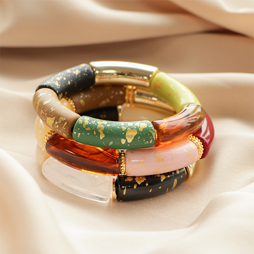 Perline in acrilico tubo lucida verde lime-oro