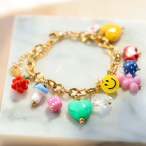 Con le ultime perline in acrilico a forma di dadi e cuori, puoi creare i gioielli più carini. Le perline sono disponibili in vari colori. Combina queste perline in acrilico con i popolari funghi, smiley e fruttini per un look giocoso. Crea un braccialetto con ciondoli o infila una collana con diverse perline.